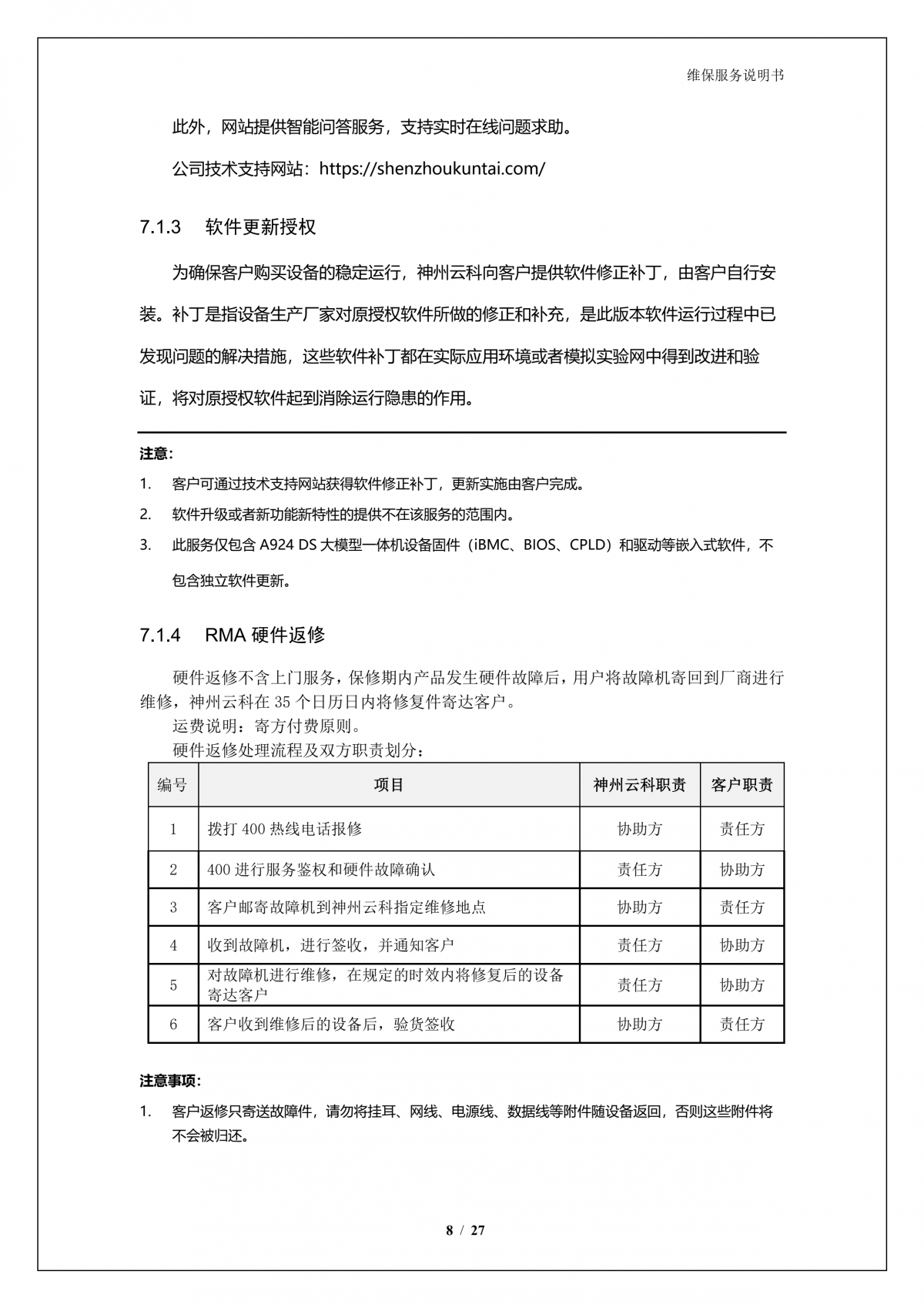 5657威尼斯(中国)A924 DS大模型一体机硬件维保服务说明书_V1.1