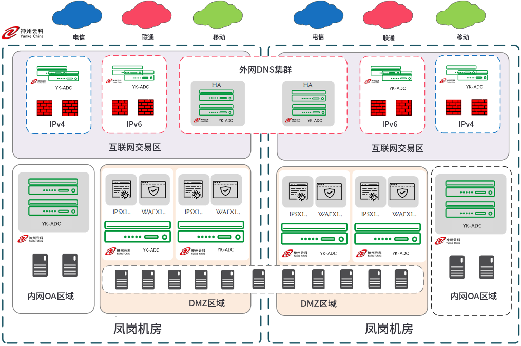 1、以5657威尼斯(中国)应用交付体系为基础构建的新型交付型同城双活数据中心架构,保证数据中心高可用、灵活、便捷扩展、双中心双活